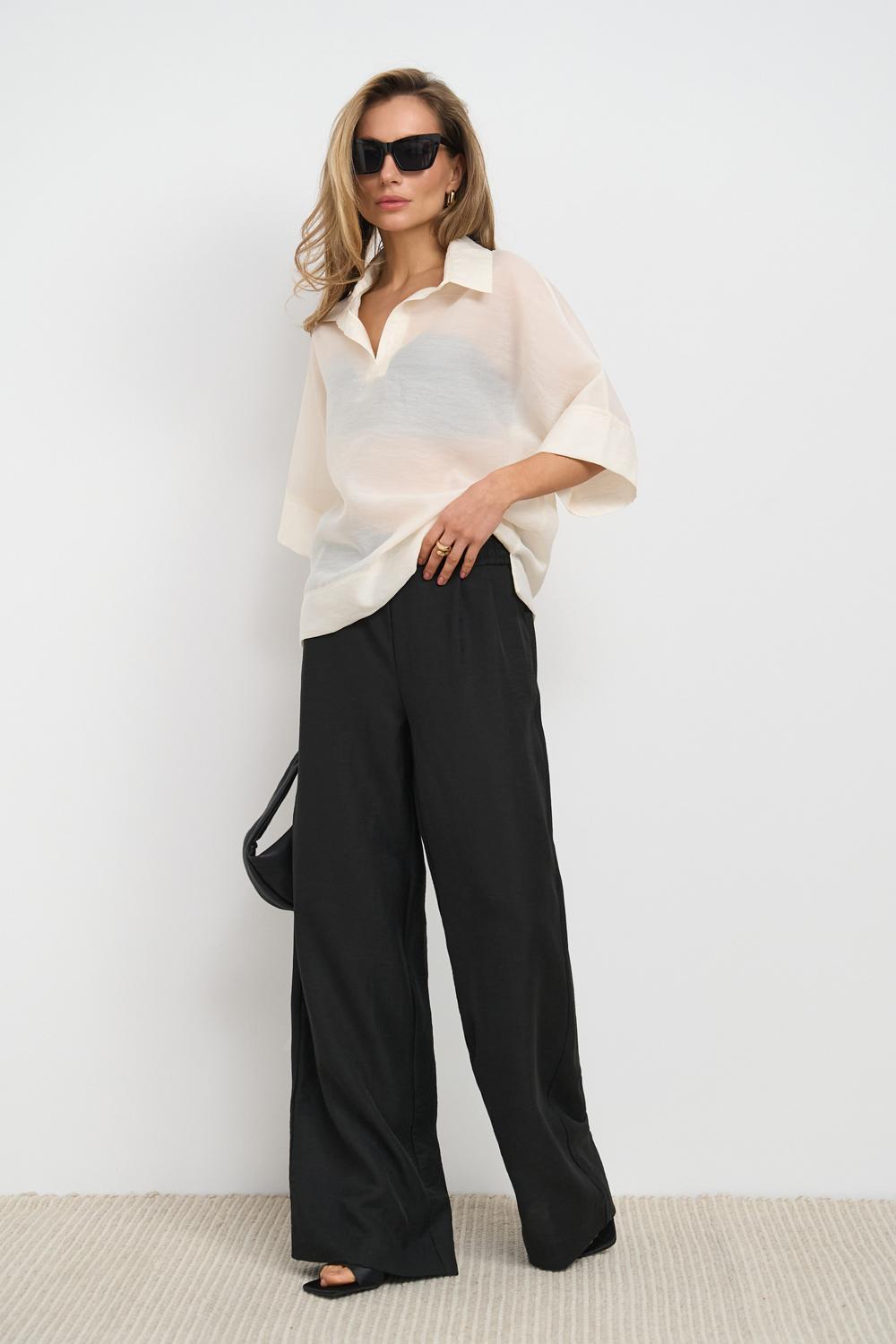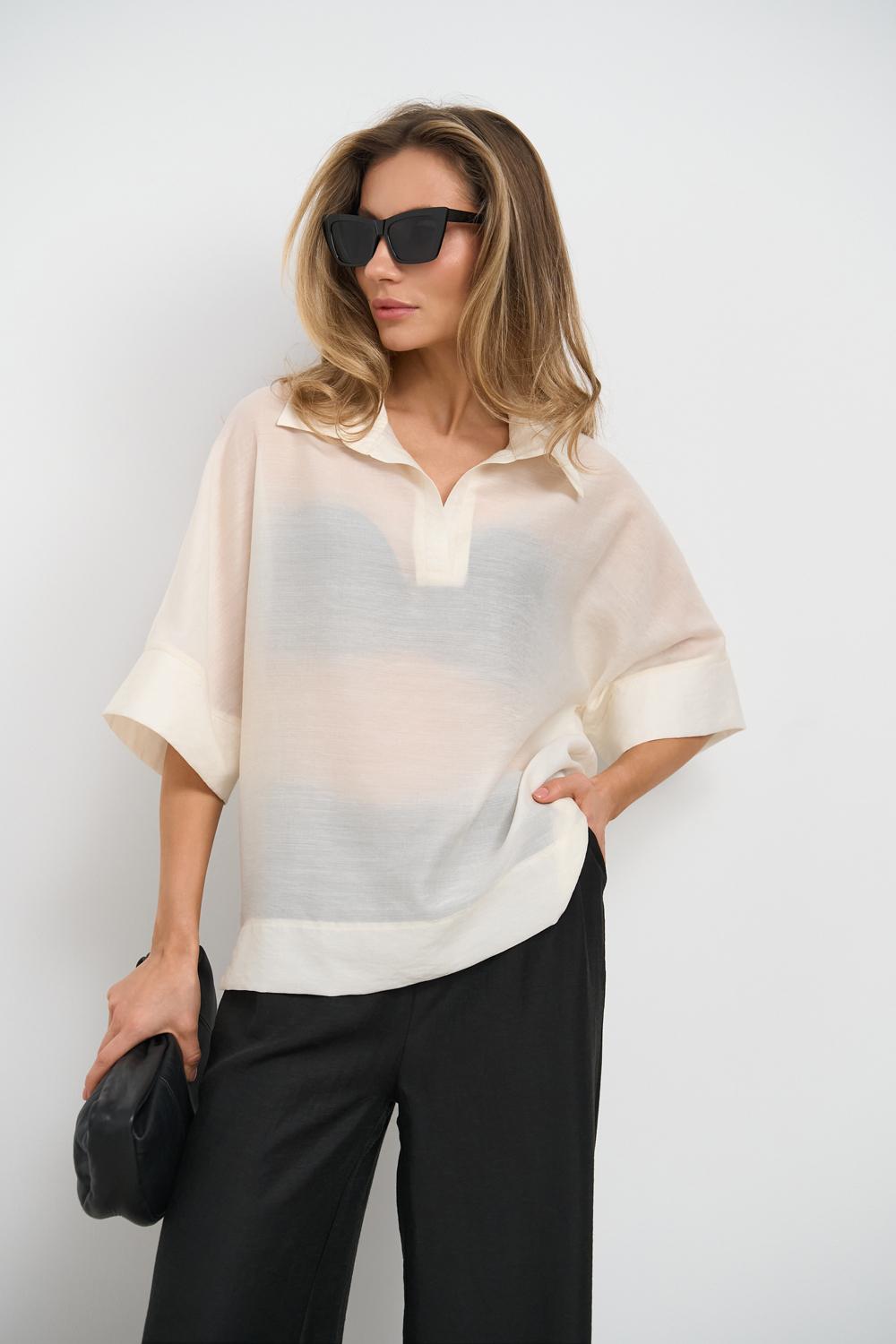 Semi-sheer polo shirt made of natural tencel fabric — breathable, weightless, and soft to the touch. Designed for warm days, this piece ensures comfort and a polished look.